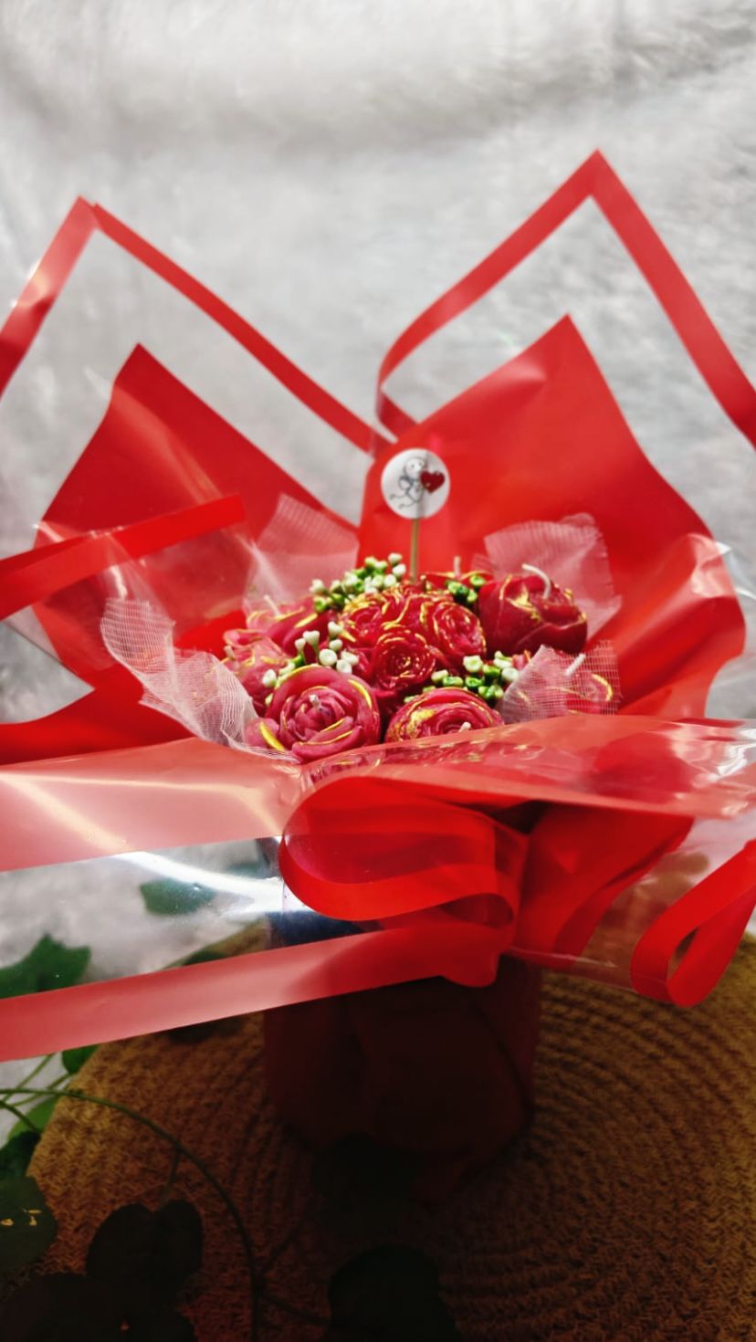 Bring romance, warmth, and elegance together with our Rose Candle Bouquet, a stunning handcrafted arrangement designed to look like a bouquet of blooming roses while glowing like candles. Each rose-shaped candle is intricately molded and hand-finished with elegant golden accents, making it a perfect blend of art and ambiance.